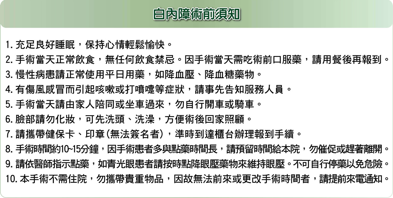 白翳又稱為「翳狀肌肉」是因為眼球外面結膜下組織受到刺激而產生,蓋住了角膜,導致嚴重的散光或擋住光線而影響了視力,與白內障是兩種不同的疾病。
